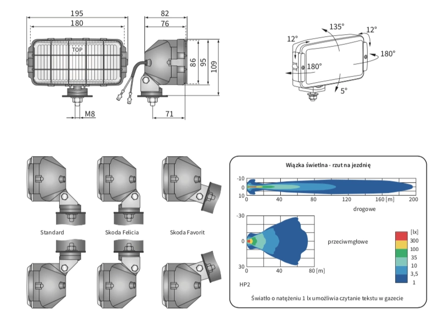 Przeznaczone są do montażu na przednich elementach nadwozia pojazdów osobowych lub ciężarowych. Mogą być montowane jako podwieszane lub stojące.
