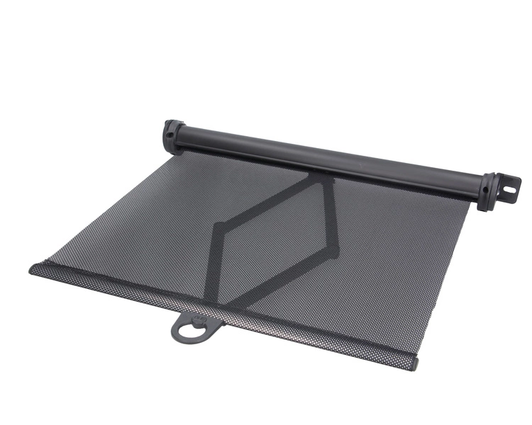Roleta przeciwsłoneczna nożycowa, osłona do kabiny ciągnika, koparki 450mm. Idealnie nadaje się do kabiny ciągnika rolniczego, koparki, ładowarki, koparko-ładowarki, minikoparki czy walca. Ten typ rolety jest używany najczęściej wtedy, gdy nie ma możliwości wstawienia bocznych prowadnic (lub są one niepożądane). Roleta może być regulowana w obie strony bez dodatkowych elementów mocujących. Prowadnica oparta jest o system nożycowy.