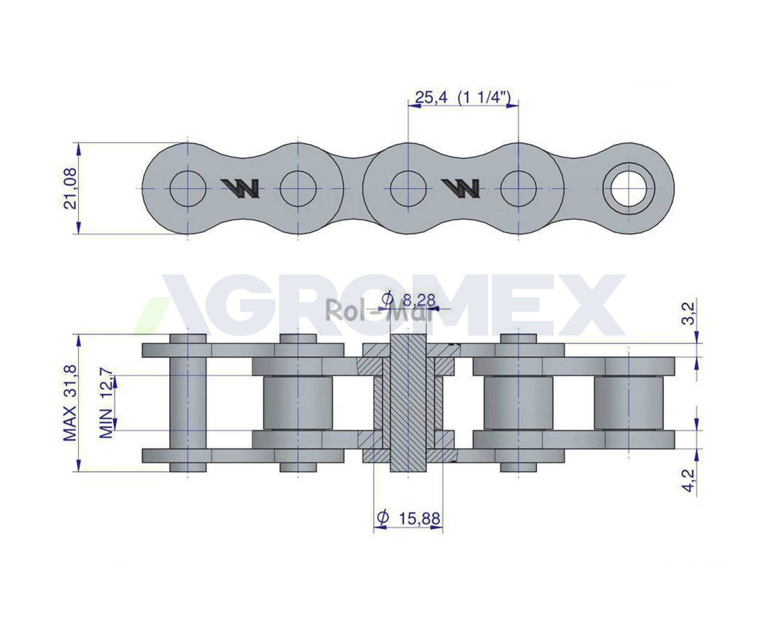 Łańcuch rolkowy 16BX 158 ogniw 4013mm Prasa Kostka Sipma 5223880720 Waryński.