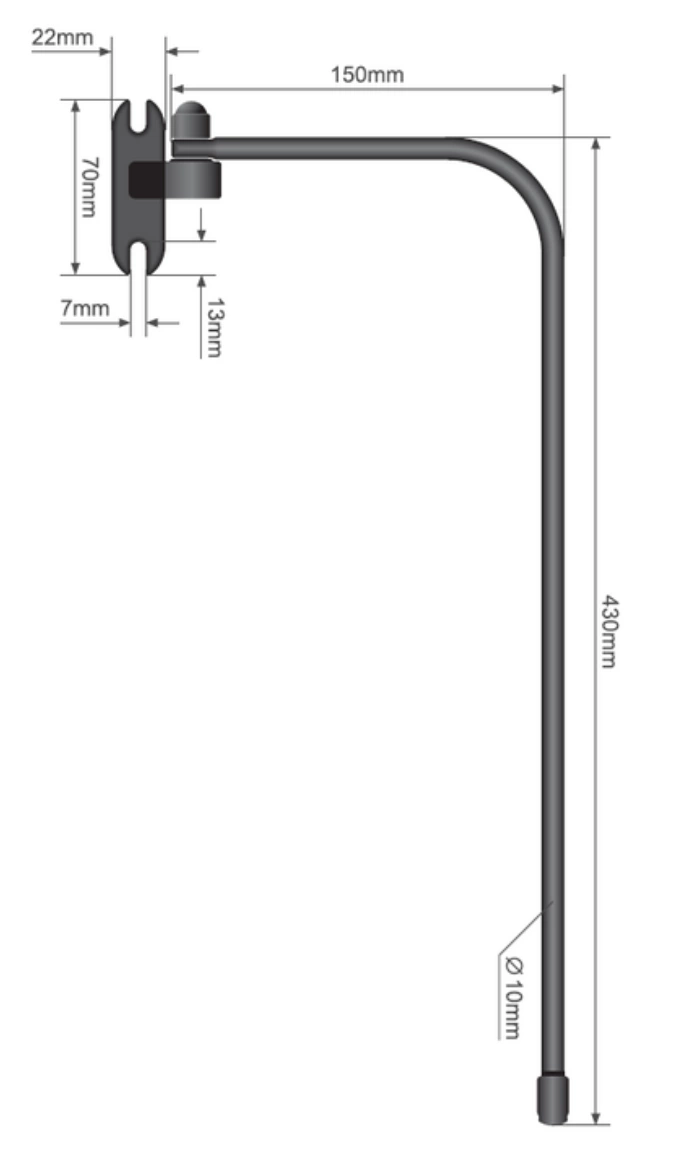 wspornik ramię uchwyt lusterka prawy ciągnika, koparki, ładowarki 170x400mm fi 10mm (1 szt.)