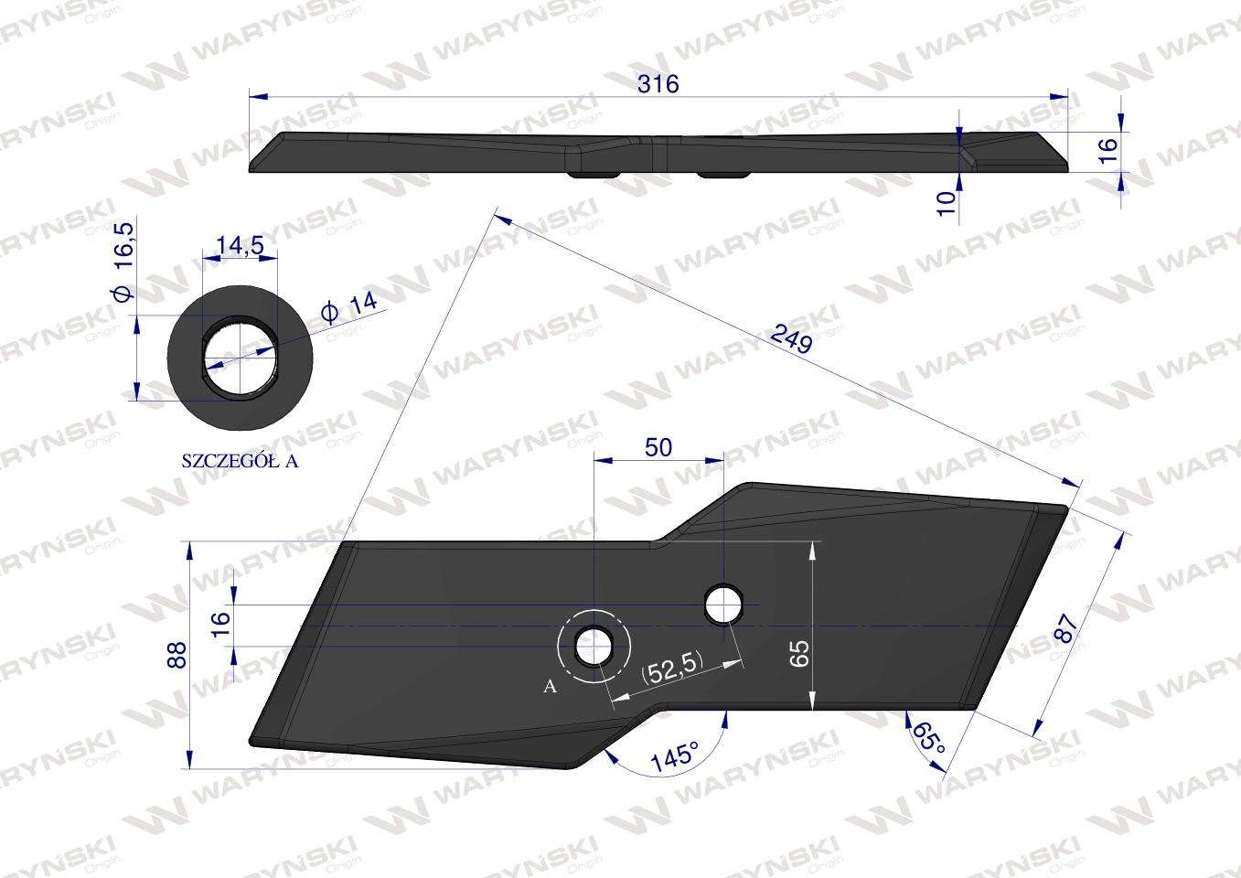 Dłuto prawe nakładka lemiesza obracalna prawa 622128 zastosowanie Kuhn Vulcan.