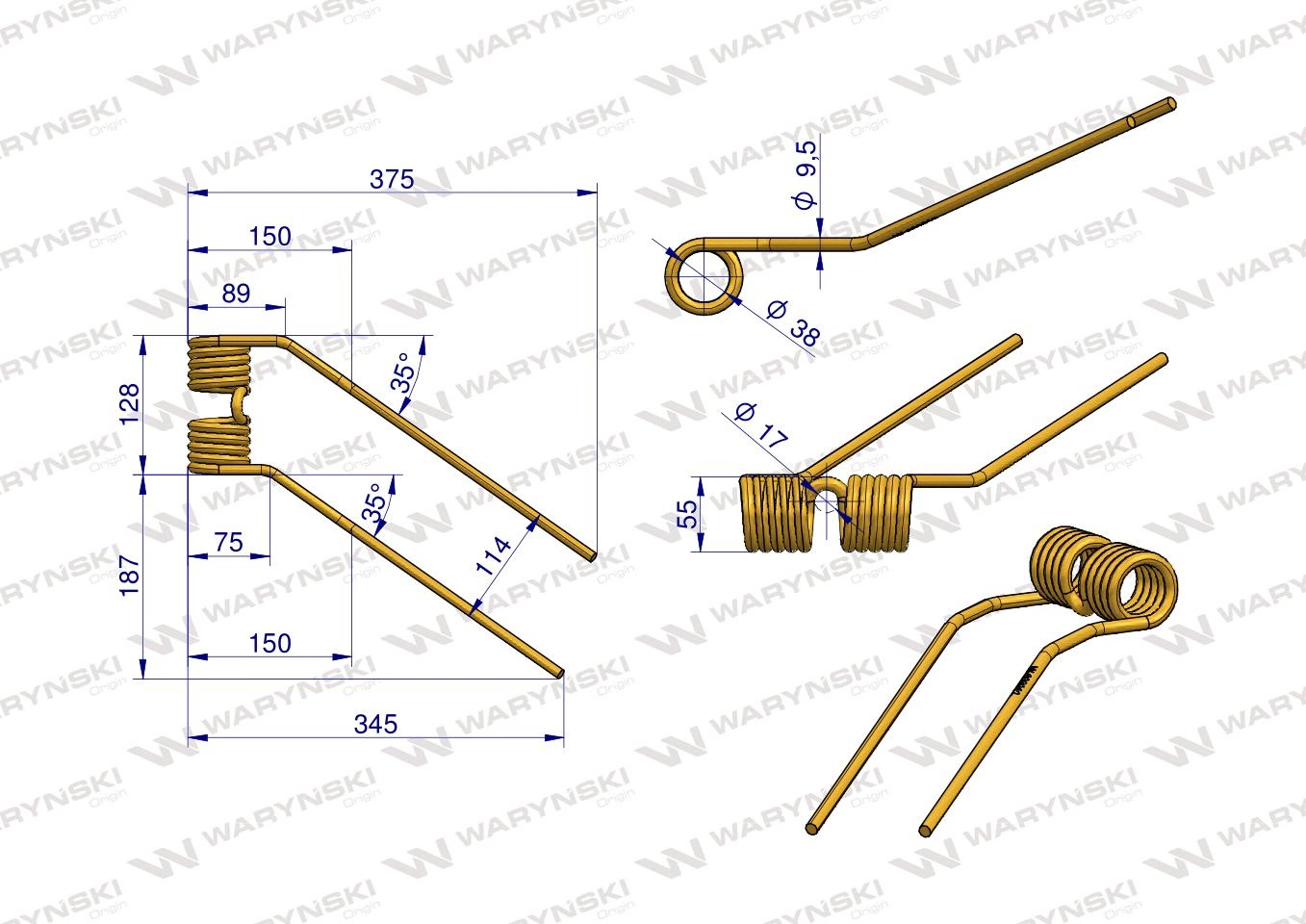 Palce sprężyste do przetrząsarek Waryński wykonane są ze stali sprężynowej dodatkowo poddanej obróbce cieplnej, która ma zastosowanie w produkcji resorów i sprężyn spiralnych. Dzięki dużej sprężystości charakteryzują się odpornością podczas zderzenia z przeszkodą. Malowane są proszkowo, co zapewnia zwiększoną odporność na korozję i ścieranie oraz niekorzystny wpływ warunków atmosferycznych. Ich właściwości pozwalają na optymalny przepływ transportowanej masy. Palce sprężyste Waryński cechują się powtarzalnością, którą zapewnia kontrola jakości wbudowana w proces wytwarzania produktów. Wszystkie palce wykonane są z wysokogatunkowej stali sprężynowej, wykorzystywanej także przez najlepszych producentów oryginalnych palców do maszyn zagranicznych.