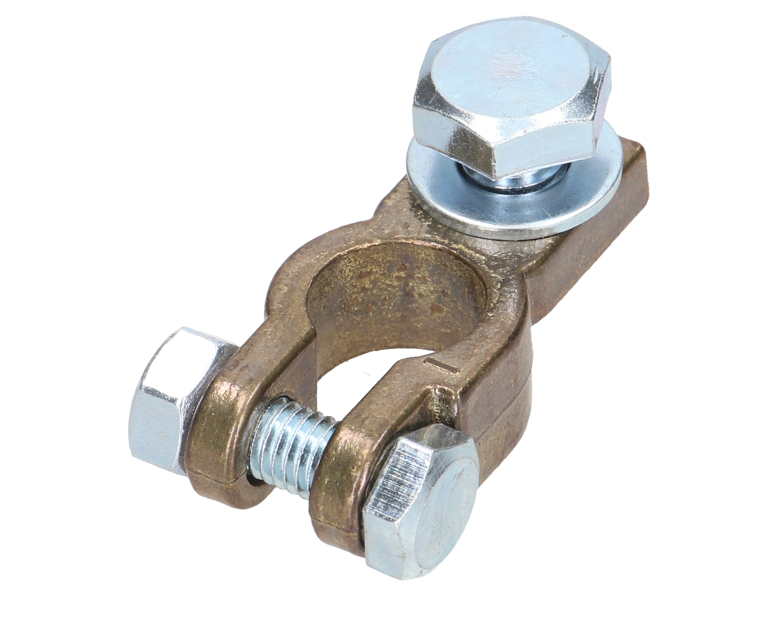 Klema, zacisk akumulatora mosiężna ujemna 50 mm.