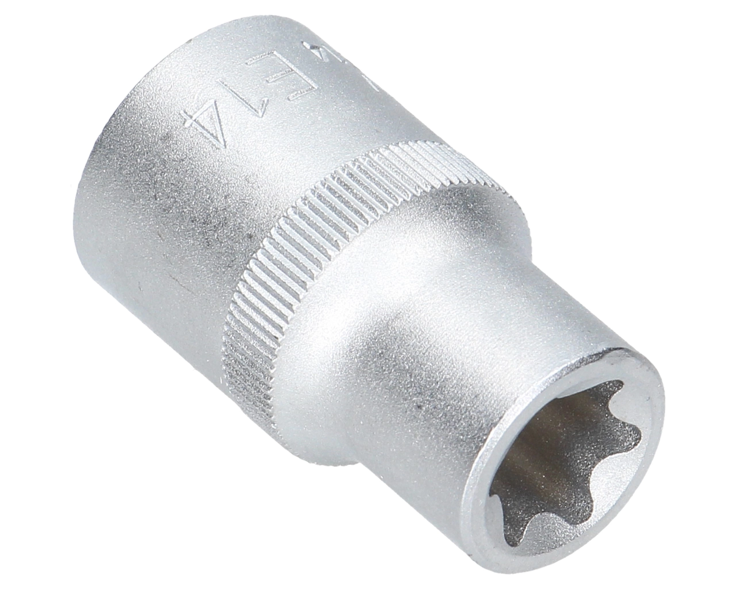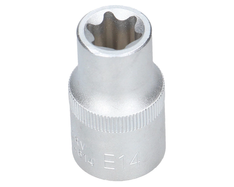 Nasadka gwiazdkowa typu E-TORX o rozmiarze E14. Jest przeznaczona do współpracy z kluczami 1/2 cala i służy do odkręcania i dokręcania śrub i nakrętek z zewnętrznym profilem TORX (często spotykanych w motoryzacji, np. w elementach silnika i skrzyni biegów).