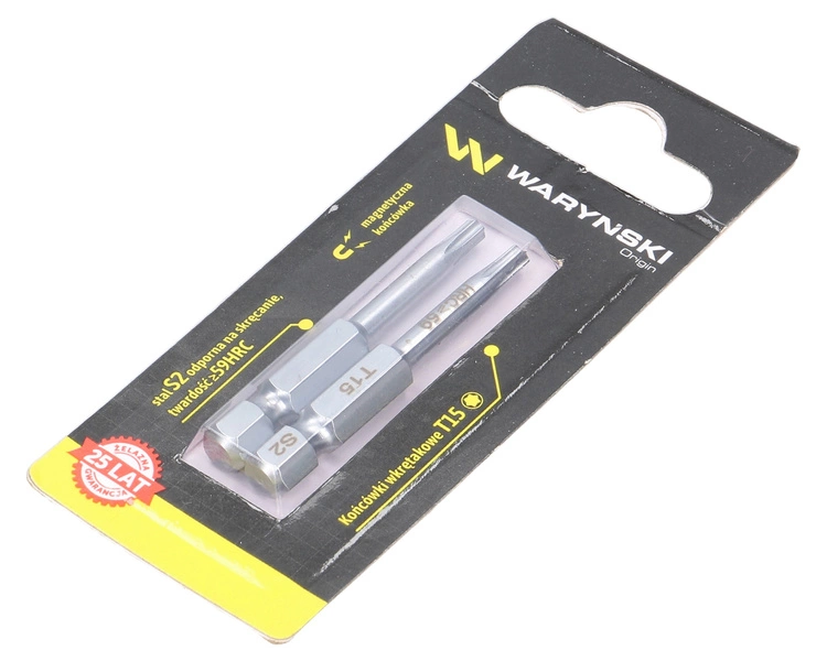 Końcówki wkrętakowe bity T15 50mm Waryński komplet w blistrze dwusztukowym